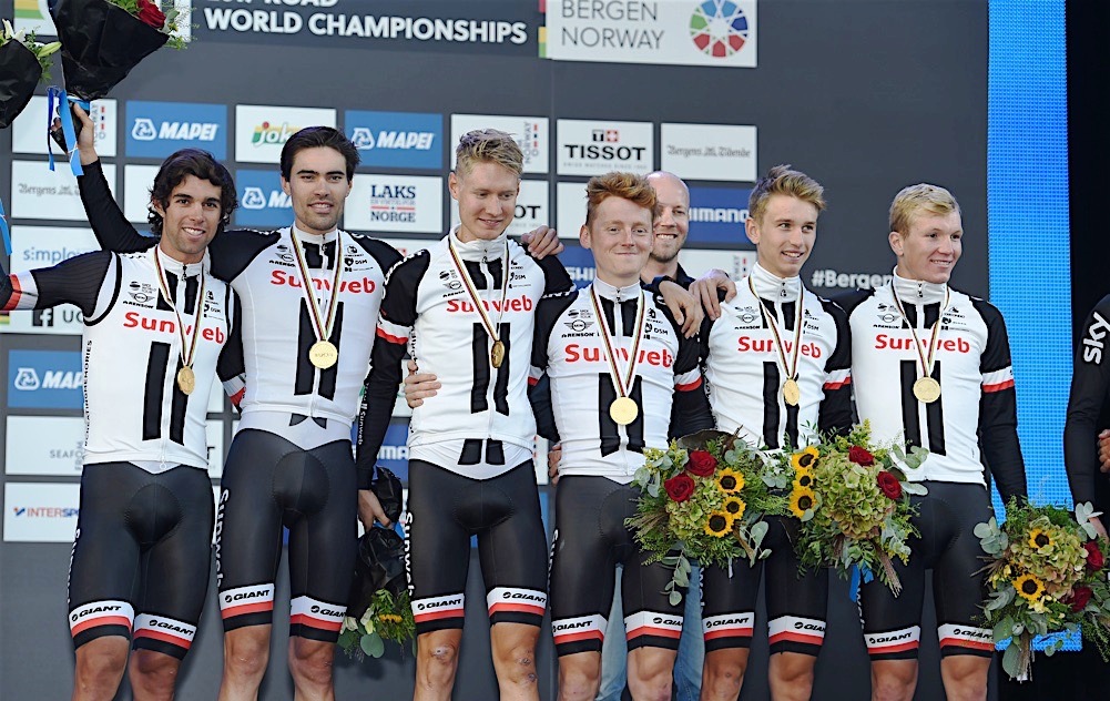 Στο ηλιόλουστο Μπέργκεν, άνοιξε η αυλαία του Παγκοσμίου Πρωταθλήματος, με το άθλημα της ομαδικής χρονομέτρησης. Νικήτρια ομάδα ήταν η Sunweb με επικεφαλής τον Tom Dumoulin. Μεγάλη χαμένη η ομάδα της Quick Step Floors, που τερμάτισε 4η.