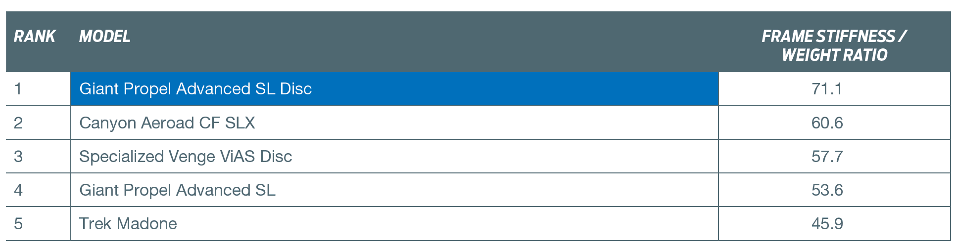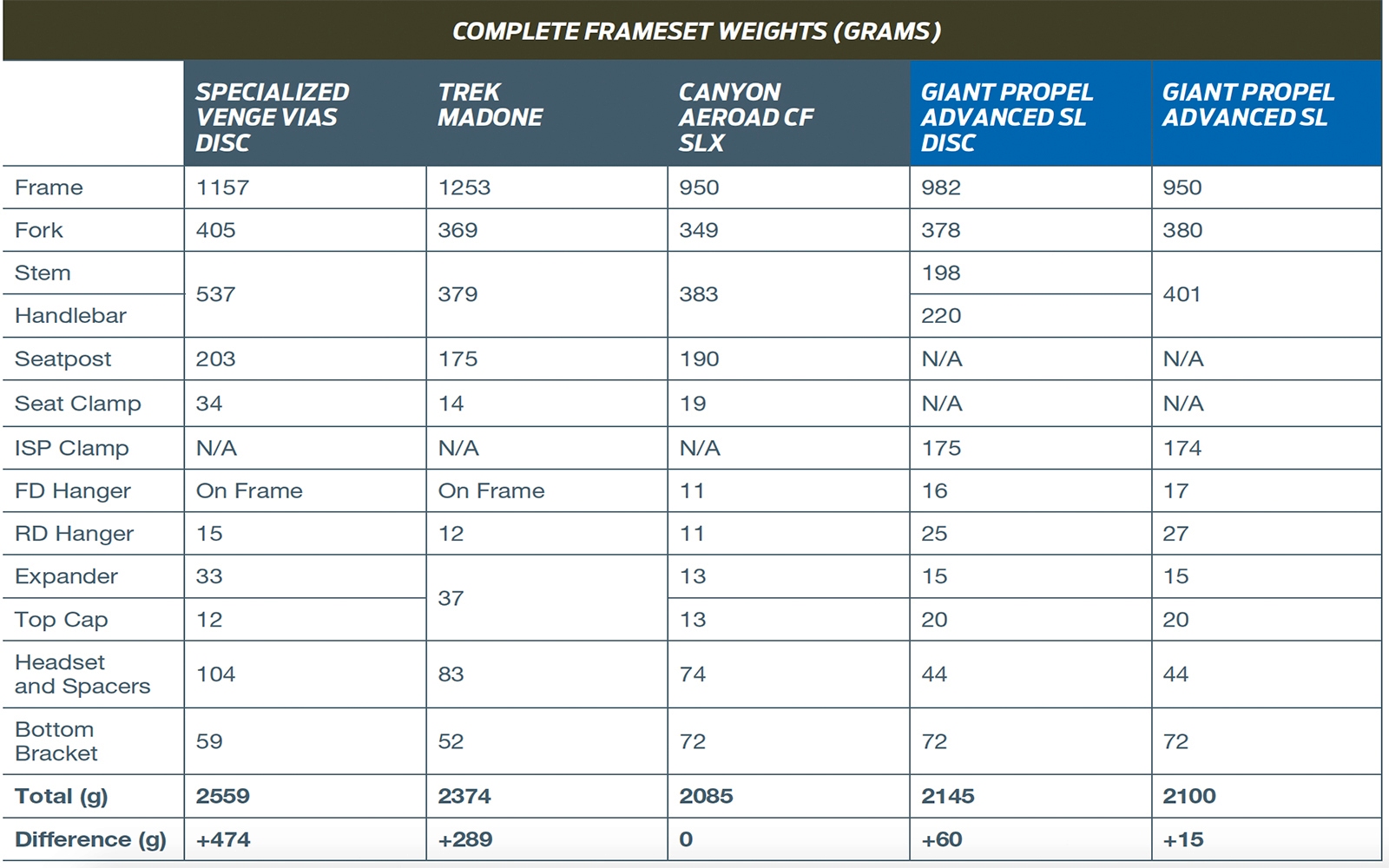 Το τρίτο τεστ έχει να κάνει με το συνολικό βάρος του πλαισίου, σε σύγκριση με άλλα ποδήλατα. Το καινούργιο πλαίσιο αποδεικνύεται 45 γραμμάρια βαρύτερο απο το παλιό.