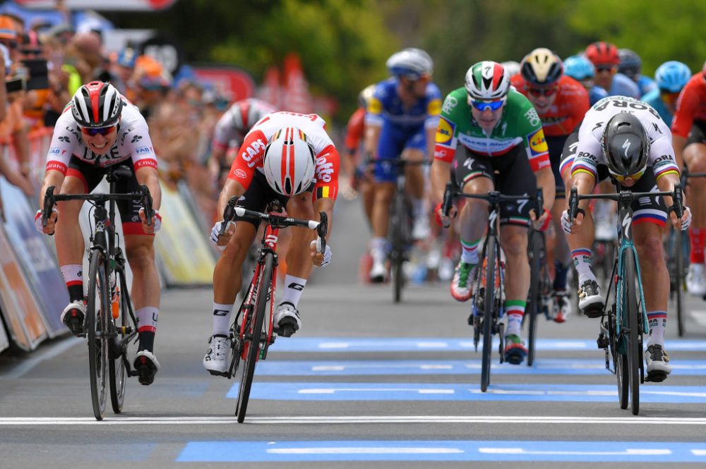 Δύο δεξιές στροφές ακολούθησαν το τελευταίο χιλιόμετρο και ο Elia Viviani (Deceuninck-Quick-Step) είχε το τέλειο προβάδισμα από τον συναθλητή του Fabio Sabatini. Αλλά δεν κατάφερε να πιέσει αρκετά και ο Ewan, στην 4η θέση πίσω από τον Sagan, βγήκε από δεξιά και προσπέρασε και τους τρεις.