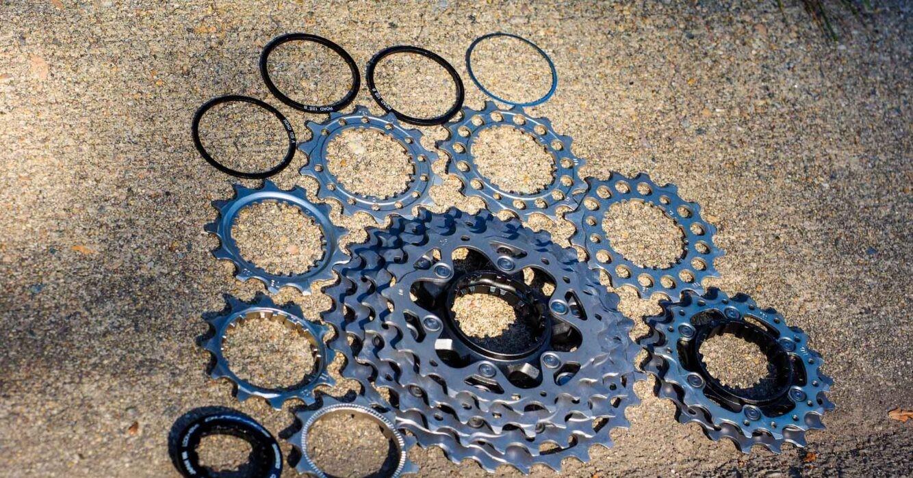 Τα 5 μεγαλύτερα γρανάζια είναι κατασκευασμένα από τιτάνιο στην Dura-Ace, ενώ τα υπόλοιπα είναι από ατσάλι (όλα τα γρανάζια είναι από ατσάλι για την Ultegra, ως συνήθως). Τα μεγαλύτερα έ6 γρανάζια χωρίζονται σε δύο μίνι συμπλέγματα, με το κάθε γρανάζι να είναι πακτωμένο σε μια αράχνη αλουμινίου για να μειώσει το βάρος και να αυξήσει την ακαμψία σε σχέση με ελεύθερα γρανάζια.